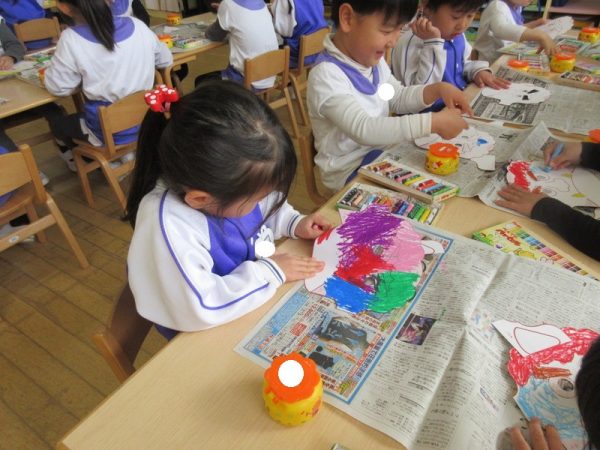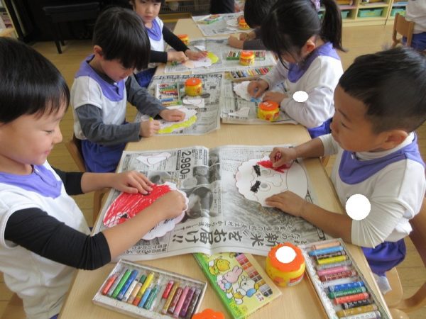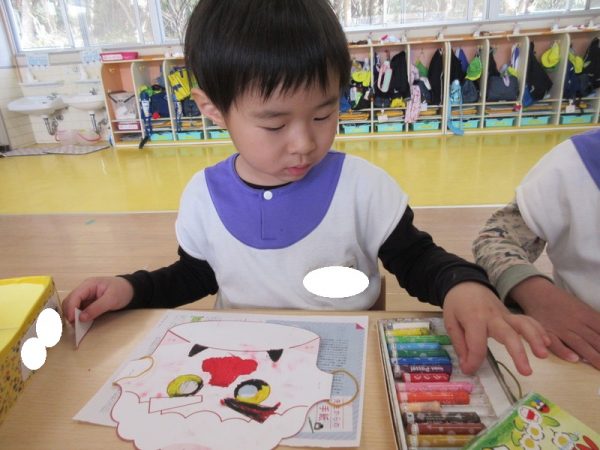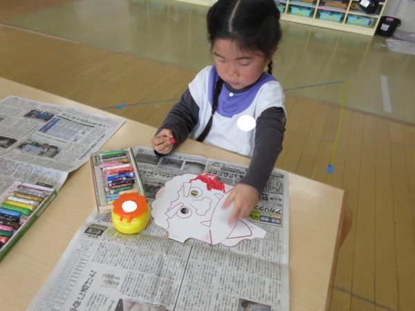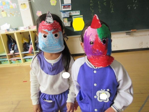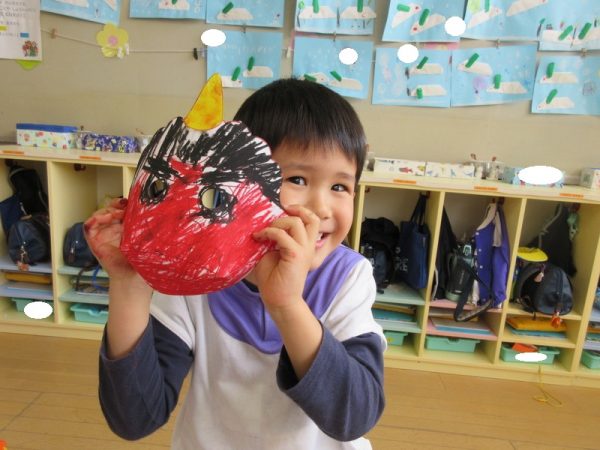 みんな自分の鬼のお面が気に入ったみたいで、友だちと見せ合い、いつまでも付けている姿が可愛かったです☺