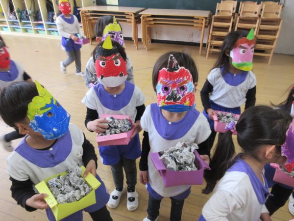 今日は2月3日 節分の日でした!津西幼稚園でも、新聞紙で作った豆を使って豆まきを楽しみましたよ。
