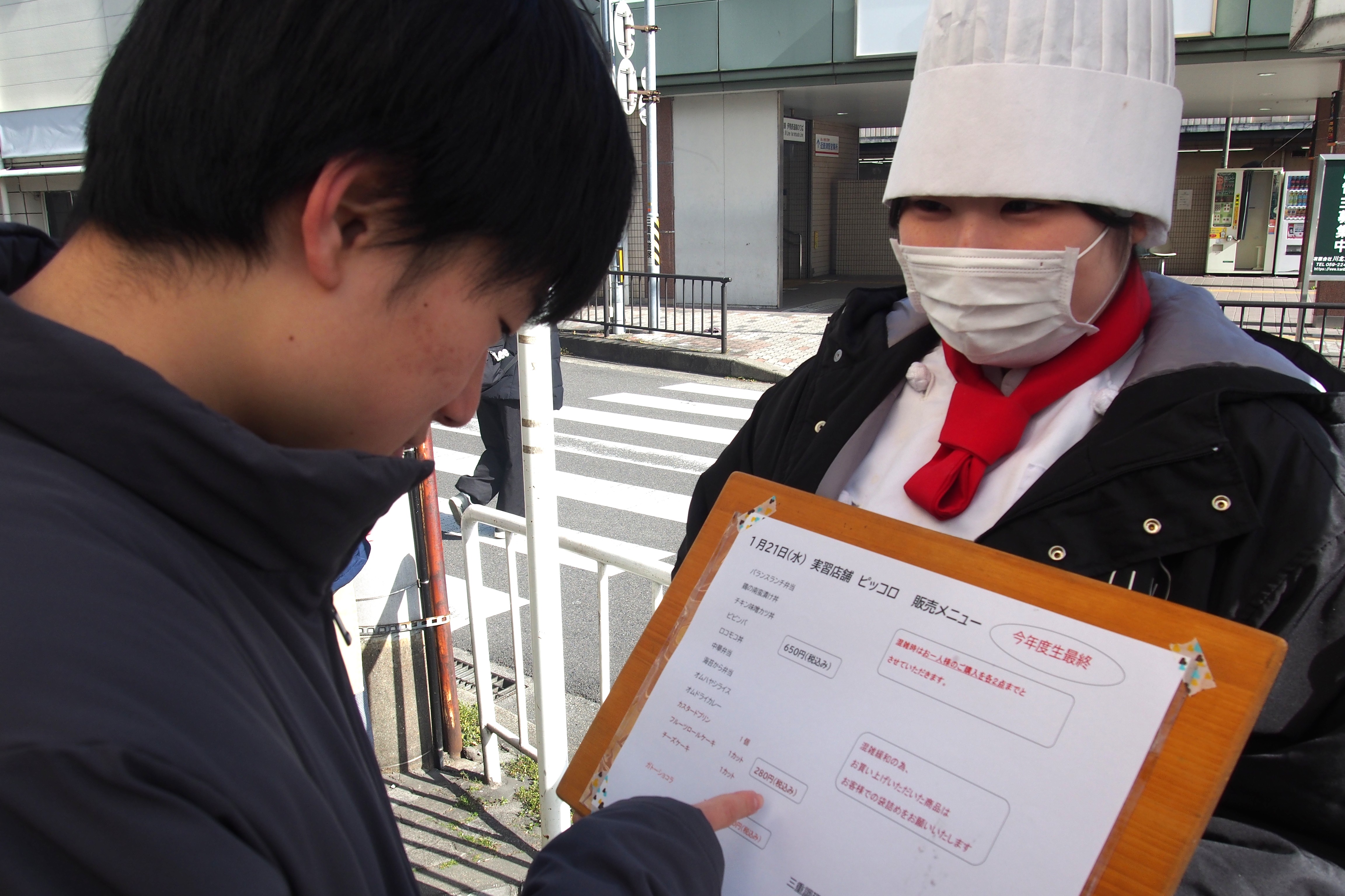 実習店舗「piccolo(ピッコロ)」が今年度最後の営業を終えました! 最後の営業とあって学生たちはやる気に満ちていました。 営業前からたくさんのお客様にお並びいただき、お弁当やデザートも続々と完売に☆ 1年間ありがとうございました。 来年度の「piccolo(ピッコロ)」営業も頑張ります‼