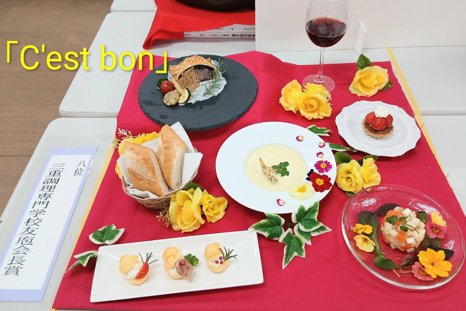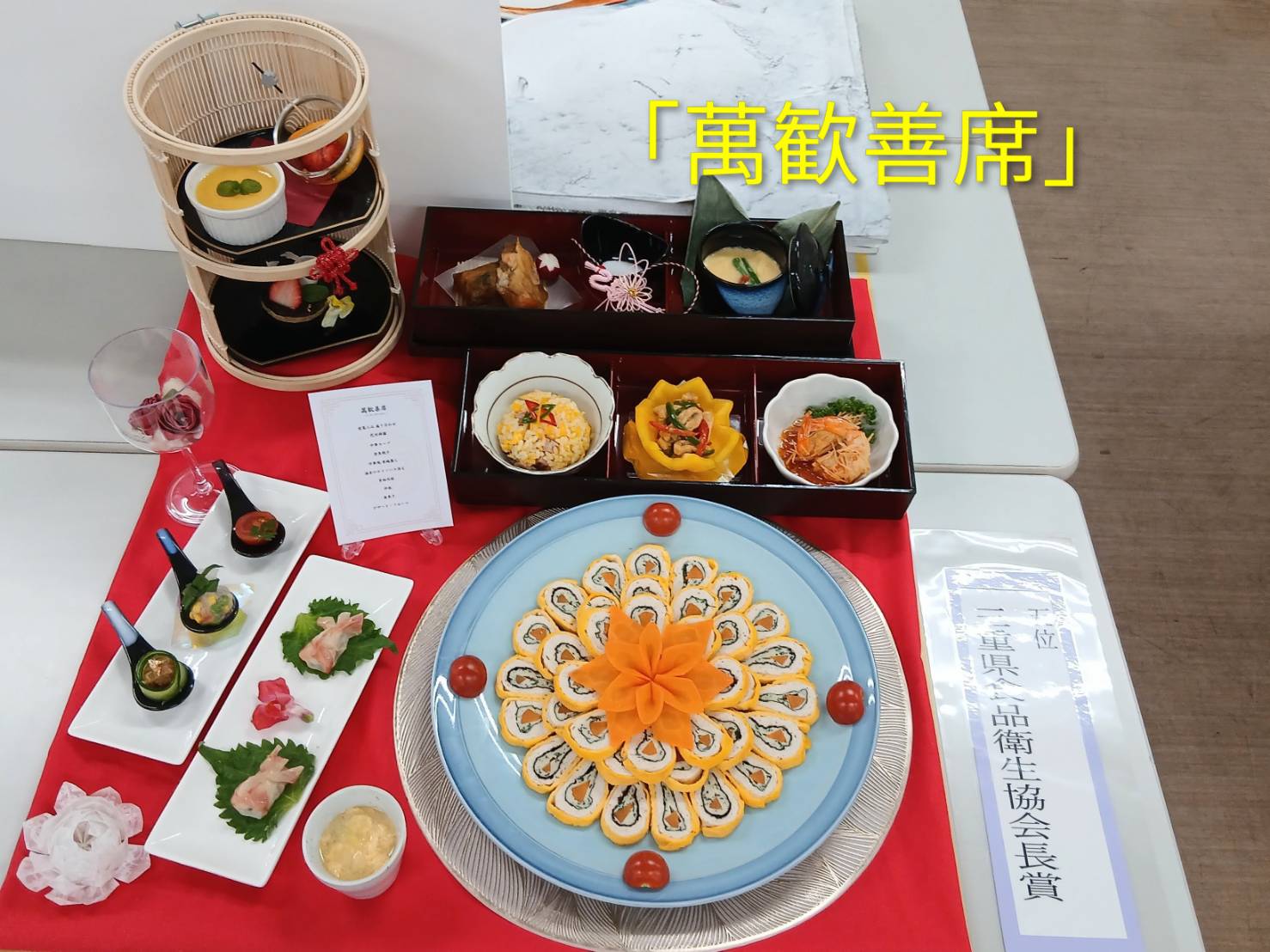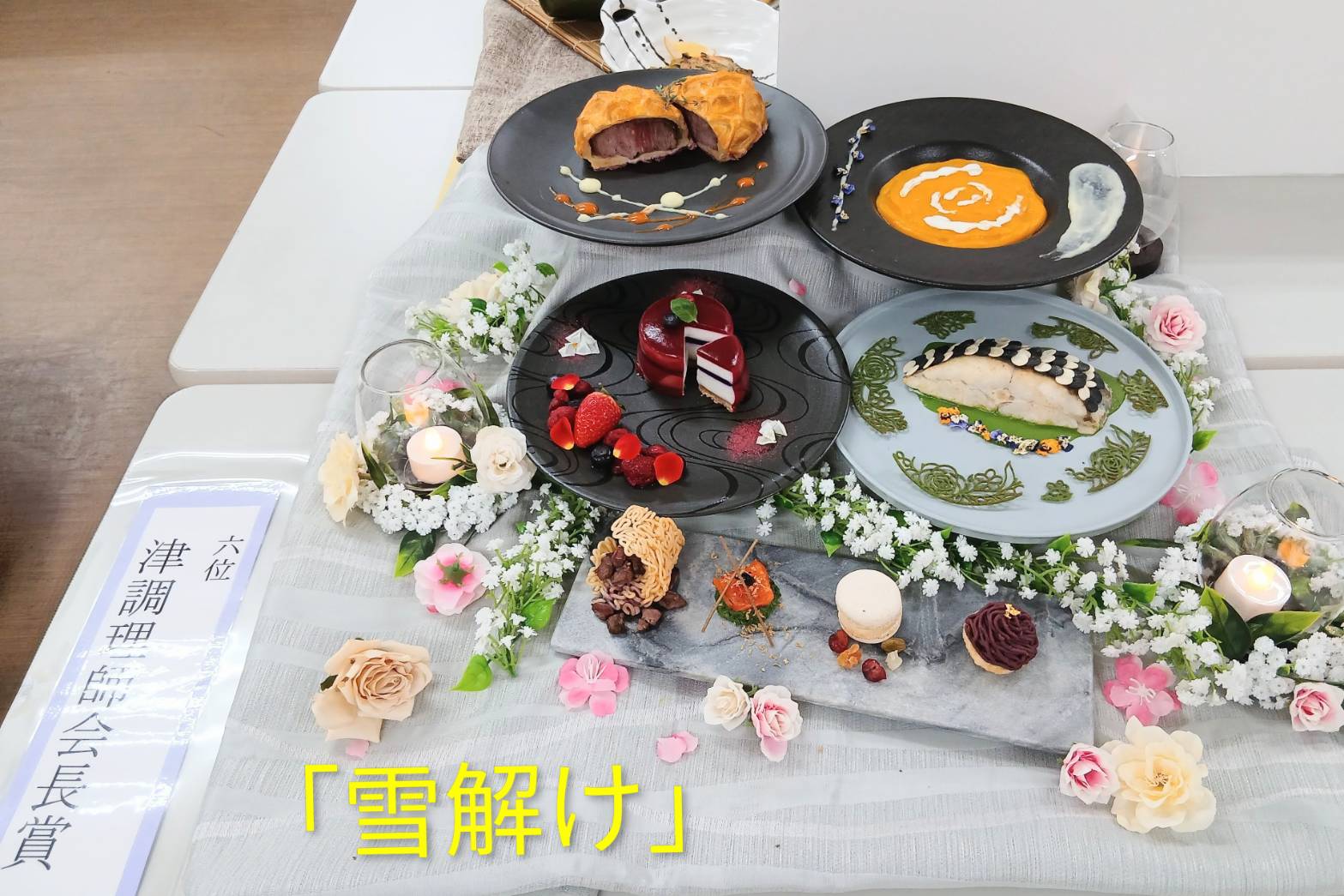 今回は料理作品展の受賞作品5位~8位をご紹介! 5位 三重県食品衛生協会長賞 「萬歓善席-マンカンゼンセキ-」 6位 津調理師会長賞 「雪解け」 7位 三重調理専門学校 教育研修協力会長賞 「花冷えに亡く季節」 8位 三重調理専門学校 友庖会長賞 「C‘est bon」