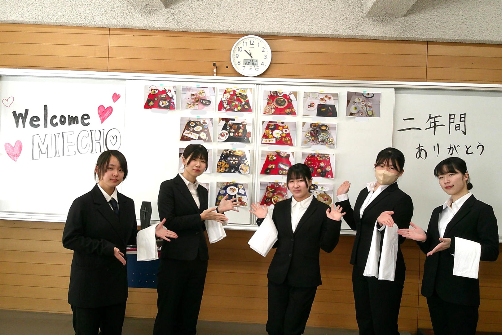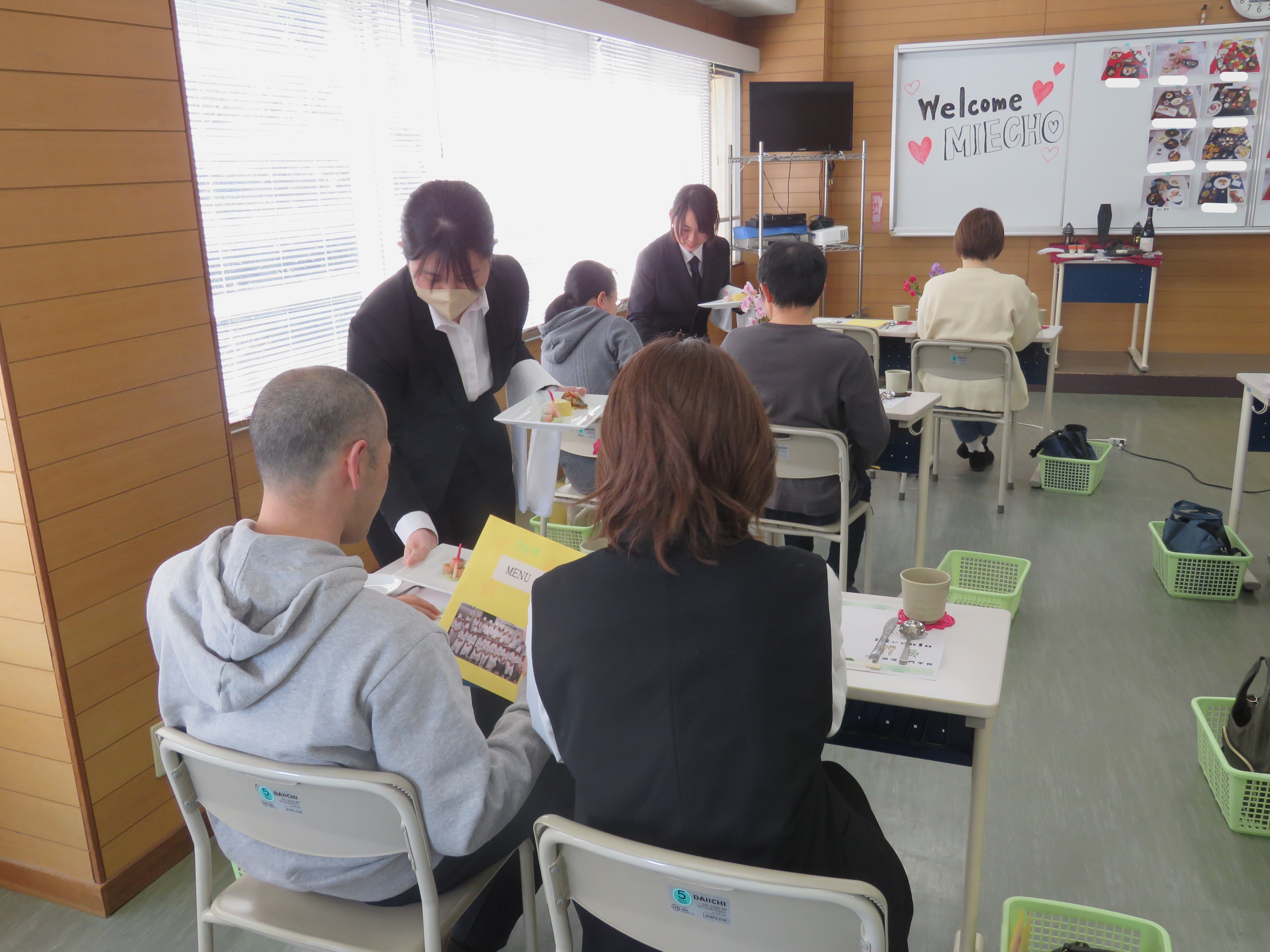 先日2年生が2年間の締めくくりに、保護者の方を招待し食事会を開催! 今まで支えてくださった保護者の皆様に料理・サービスを通して、感謝の気持ちと 2年間の学びや成長を伝えました。 実習の時とは違いお客様のペースに合わせて盛り付けし提供をするので、戸惑いもありましたが、実習店舗やサービス実習で鍛えた対応力で無事に食事会は成功☆彡 保護者の皆様にも「美味しかった‼」と喜びのお声をいただきました。 3月には卒業を迎え、春からは社会人!皆さんの活躍を期待しています。